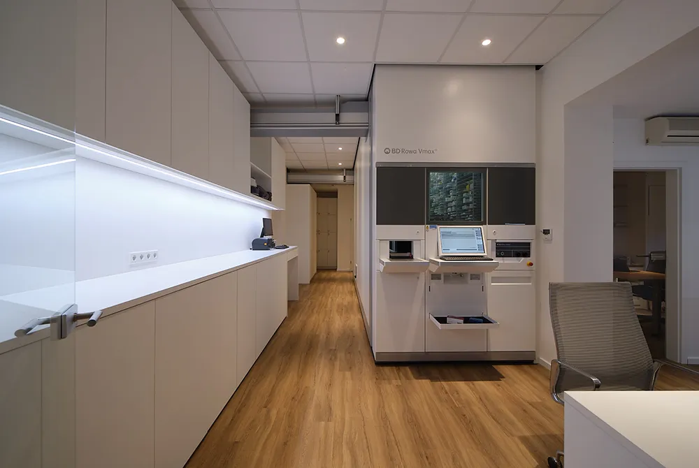 Durch die Neuorganisation der Flächen entstanden ein großzügiger Verkaufsraum, helle Arbeitsplätze, ein neues Büro sowie ein Aufenthaltsraum. Modernste Kommissioniertechnik sorgt zudem für effiziente Abläufe und unterstützt das Team im Alltag.
